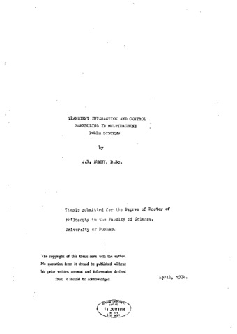 The thesis describes new methods of determining control schemes for multimachine power systems by using Linear Multivariable Control Theory. The initial stages of the work include a review of the different modelling techniques available for studying the performance of synchronous machines by analogue or digital computation. Based on this review a non linear digital program that describes any multimachine power system is produced. For control work a linearised version of this program is available. A review of the mathematical theory behind Linear Multivariable Control methods is given emphasising its link with the classical approach of Nyquist Analysis. The control theory is interfaced with the digital model of the power system to produce a series of designs by which control is achieved by either: (i) Impedance switching (ii) Fast valving (iii) Field Excitation The different control designs are compared both with each other and with control schemes suggested by other authors, forking, from a purely mathematical basis control schemes are postulated that produce improved operation to both small and large disturbances. The advantages of fast valving as a control method is outlined and suggested as the most advantageous method of overall control for both single - and multimachine power systems.