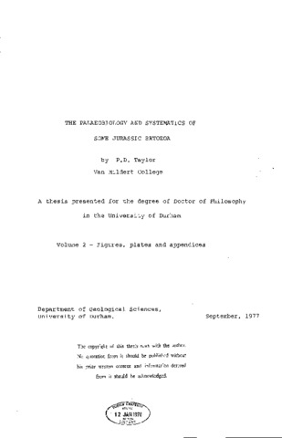 The palaeobiology and systematics of some Jurassic bryozoa