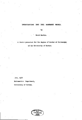 This thesis is concerned with dual resonance models, especially the Neveu-Schwarz and Ramond Models. The first chapter is an introduction to the subject of dual models and is concerned with the concepts that lead to them and early ideas of dual models. Chapter two presents, in the operator formalism, the Conventional Dual Model and then the Neveu-Schwarz and Eamond Models and is meant to indicate the more important features of these models. The: first part of chapter three deals with the string pictures of dual models and various ways of considering dual models which can be considered to be related to the string pictures. The latter half of chapter three deals with the formulation of the Neveu-Schwarz Model by the use of a finite Grassmann algebra which extends the Conventional Dual Model, in Koba-Nielsen variables, directly into the Neveu-Schwarz Model. The tree graph and one loop diagrams are calculated explicitly while the form for higher order terms is given in terms of automorphic functions. The first part of chapter four presents a method of obtaining the functions, involved in one loop meson and fermion diagrams with external mesons, by the use of Neumann functions on an annulus, the boundary conditions on the annulus giving the different loop diagrams. The second part of chapter four deals with, the calculation of the Neumann function for one loop diagrams with external fermions and an attempt to obtain the partition function which is necessary to write down the complete amplitude at the one loop level. Chapter four is completed by the construction of the one loop amplitude for four external fermions.