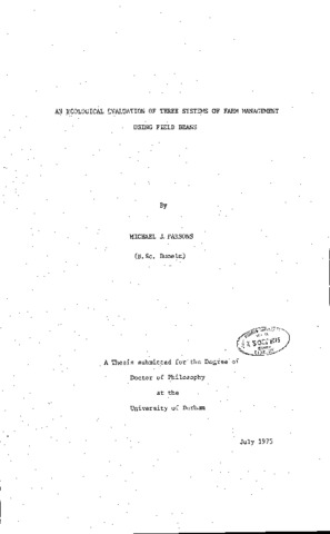 An ecological evaluation of three systems of farm management using field beans