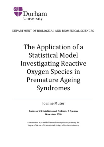 The Application of a Statistical Model Investigating Reactive Oxygen Species in Premature Ageing Syndromes