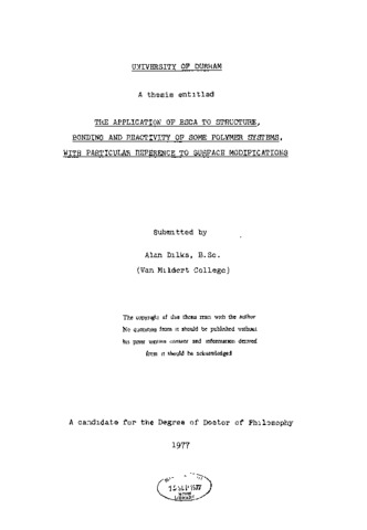 The application of esca to structure, bonding and reactivity of some polymer systems, with particular reference to surface modifications