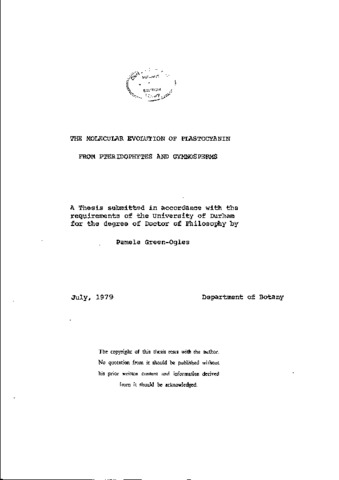 The molecular evolution of plastocyanin from pteridopmrtes and gymnos perms