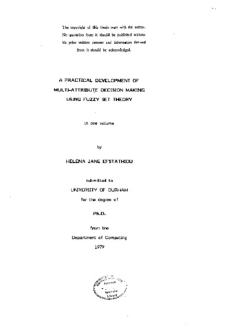 The foundations of multi-attribute utility theory are reviewed and compared with the author's practical experience and other psychological studies of decision-making. The case is presented for a new approach to decision-making, moving away from the strictly numerical techniques. Instead of concentrating on the normative or descriptive aspects of decision-making, themed-problem of decision-making is studied, thereby giving the decision-maker more control over the decision-making process and ensuring a more truly participative approach to design and decision-making. The problem of uncertainty is also tackled by considering it from both the stochastic and fuzzy standpoints. A revised approach to the assessment of uncertainty and its incorporation in the decision-making process is advocated. The theoretical framework behind these ideas is expressed using fuzzy set theory. Previous attempts to apply fuzzy set theory to multi-attribute decision-making are reviewed and criticised for their failure to tackle the basic assumptions of multi-attribute utility theory. A practical methodology for using verbal descriptions is derived, and illustrated with a worked example. A practical description of how to apply the method is included, and the results of some applications are presented.