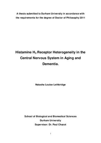 Abstract The histamine H3R is a classic G-protein coupled receptor and is a potential therapeutic target for a number of central nervous system pathologies. Major pharmacological heterogeneity between and within species has hindered the clinical development of H3R-targeted drugs. The pharmacological heterogeneity displayed by the H3R is thought in part to be a result of alternative splicing of the H3R which generates a number of possible splice variants, some of which have been shown to be functional and others which appear to be non-functional in terms of ligand binding and signal transduction. mRNA encoding the different isoforms has been shown to be distributed throughout the central nervous system in a region specific manner. For the first time we have shown three of the common H3R isoforms (hH3 329, hH3 365, hH3 445) to be expressed in the human brain using a novel panel of immunological isoform specific probes. We provide preliminary evidence for raised levels of H3 445 and H3 329 isoforms in Parkinson’s disease and Lewy Body Dementia cases, respectively, compared to age-matched controls. We have shown a variety of H3R ligands display differential pharmacological properties at the three hH3R isoforms expressed in HEK 293 cells. Most notably a 5- and 10- fold lower affinity for a highly selective clinical lead H3R inverse antagonist, GSK189254, at the H3R 329 and H3R 329 + 365 isoforms, respectively. The pharmacological differences observed indicate, together with the availability of the immunological probes, that it will be possible to dissect the physiological roles of human H3 receptor isoforms. The H3R is an attractive therapeutic target for age-related dementias. H3R antagonists have undergone a large number of pre-clinical assessments in which they display pro-cognitive effects, particularly in drug-induced amnesias. It is important to establish whether there are any changes in H3R expression in normal physiological aging and in age-related human dementias. Based on quantitative [3H] GSK189254 autoradiography, we have shown that H3Rs are largely preserved in key cortical and striatal brain regions in aged CD-1 and TASPM mice, as well as in aged humans. Furthermore, H3 receptors were largely unchanged in Lewy Body Dementia and Alzheimer’s disease cases, which provide further evidence validating the H3R as a promising target for age-related cognitive disorders. Psychotic symptoms are common features in both Lewy Body Dementia and Alzheimer’s disease. Interestingly, higher levels of H3R in the globus pallidus correlated with the presence of both delusions (+ 40% and + 37%) and hallucination symptoms (+22% and +14%) within these human dementias, consistent with the recent positive clinical use of H3R antagonists in psychotic disorders. In contrast, using a novel validated all-in-one behavioural elevated platform test in mice, evidence is provided for the lack of H3R involvement in anxiety behaviour, suggesting the lack of utility in human anxiety disorders.