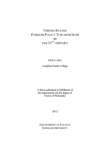 United States Foreign Policy Towards Iran in the 21st Century