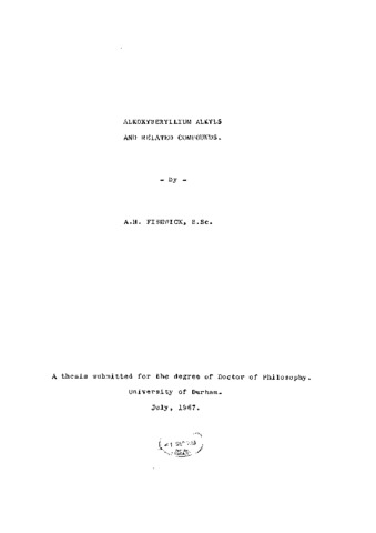 Alkoxyberyllium alkyls and related compounds.