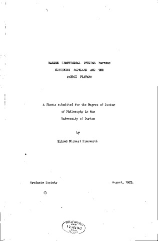 A marine geophysical survey of the northern Rockall Trough including the Banks to the north and northwest, the Wyville-Thomson Rise and the Hebridean continental shelf was carried out in 1970 and 1971,Gravity, magnetic and seismic reflection data indicates that the central Rockall Trough is underlain by about 5 km of sediment overlying a normal oceanic crust. The sedimentary thickness decreases to about 3 km and the crust becomes anomalously thick at the northern end of the Trough. Gravity and magnetic interpretation suggests that the Faeroe-Shetland channel is also underlain by anomalously thick oceanic crust. Gravity interpretation indicates that George Bligh, Bill Bailey's and Faeroe Bank are underlain by crust of continental thickness. The Wyville-Thomson Rise, which connects Faeroe Bank to the Scottish continental margin, is composed of two basement ridges of pre-Lower Oligocene age shrouded by sediments up to 1.5 km thick. The north easterly ridge is continuous from the Bank to the continental margin but the south westerly ridge terminates about 50 km from the margin. Magnetic and gravity evidence indicates that the ridges are composed of igneous material and that crustal thickening occurs beneath the ridges. An intrusive complex of unknown age lies beneath the southwest flank of the Rise. Gravity, magnetic and bathymetric interpretation indicates that the Hebridean continental shelf is underlain by Lewisian basement. Gravity and magnetic interpretation indicates that a NNE-SSW trending sedimentary basin about 1.5 km deep and with a partial covering of Tertiary lavas lies between Lewis and the Flannan Isles. Tertiary intrusive complexes, recognisable by their magnetic, gravitational and bathymetric effects, are present beneath St. Kilda, below the continental slope 75 km northwest of St. Kilda and beneath the shelf kO km north-northwest of the Butt of Lewis,