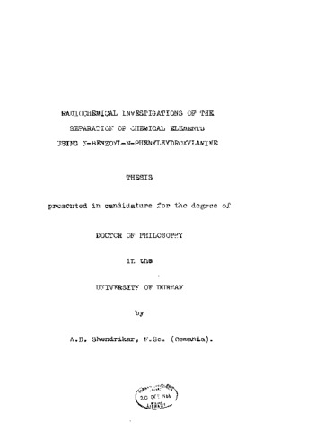 A study has been made of the application of N-benzoyl-N-phenylhydroxylamine (NBPHA) to separations of a number of transition and main group elements by liquid-liquid extraction methods. In general the partition of each element from aqueous hydrochloric or perchloric acid has been examined as a function of acidity, reagent concentration in chloroform (the second phase), rate of extraction and range of metal ion concentration. Where extraction occurred only at low hydrogen ion concentrations an aqueous acetate buffer was employed. Back-extraction into aqueous phases of various compositions was also investigated. Niobium is thus separated from zirconium; niobium, tantalum, protactinium from each other; protactinium from uranium, thorium and its fission products and gallium, indium, thallium, germanium, tin and lead from each other, A comparative study of KBPHA and the ammonium salt of N-nitroso-phenylhydroxylamine (cupferron) in the extraction of tin, antimony, arsenic and bismuth has also been carried out and potential separations with NBPHA noted. Depending on the valency state of tin, cupferron gives two distinct products, while NBPHA gives only a single product in which the valency state of the tin has previously been in some doubt. Partition studies have been devised to examine the dependence of extraction on reagent, chloride ion (a constituent of the product precipitated from hydrochloric acid) and hydrogen ion concentrations. The results in combination with those from infra-red and nuclear magnetic resonance examinations of the product of precipitation show that the substance extracted from 1 M hydrochloric acid is the same as that obtained by precipitation under similar conditions. It is Sn(C(_13)H(_10)O(_2)N)(_2)Cl(_2) which contains tin-(IV). Decomposition products of cupferron were examined using vapour phase chromatographic methods. Some polarographic work on the behaviour of tin and antimony in the presence of KBPHA has been carried out. Methods for the determination of these two elements in mixtures are presented using NBPHA.