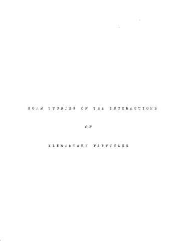 Some studies of the interactions of elementary particles