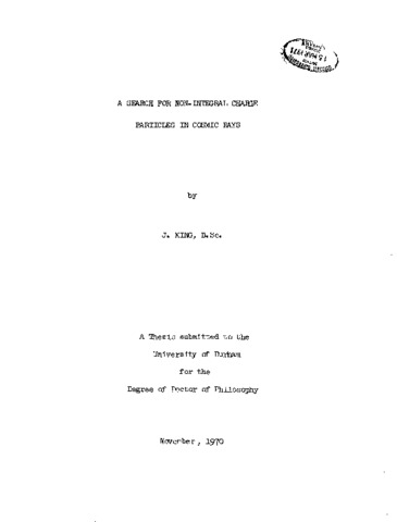 Large area proportional counters were developed and used to study the charge distribution of interacting particles incident at Durham in the near vertical direction. The experiment was operated in the search for non-integral charge particles in cosmic rays at sea level. The apparatus was sensitive to relativistic particles of charge in the range 2e/3 to 7e/3. No strong signal was obtained in the running time and the rate of non-integral charge particles was set as a limit. This limit was:- I < (4.2 ± 1.9)l0(^-9)cm(^-2)s(^-1)sr(^-1) A second experiment was developed to detect e/3 charge particles close to the core of extensive air showers at sea level. . The response of the detector for relativistic single muons was measured and the equivalent characteristics for relativistic e/3 quarks calculated. The change in response for the more energetic muons close to the air shower core was also measured and agreed with the calculated prediction. A system of electronics was constructed and was used in the two experiments and subsidiary investigations.