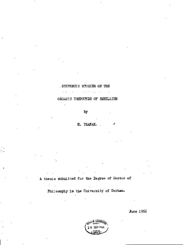 Synthetic studies on the organic compounds of beryllium.
