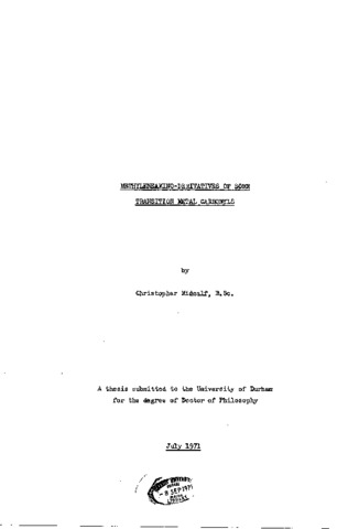 Methtleneamino-derivatives of some transition metal carbonyls.