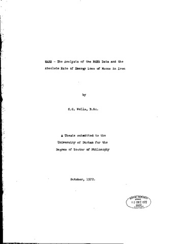 Mars - the analysis of the mars data and the absolute rate of energy loss of muons in iron
