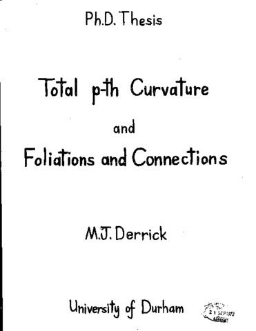 This thesis is in two parts. In Part I we consider integrals of the p-th power of the total curvature of a manifold immersed in R(^n) and thus introduce the notions of total p-th curvature and p-convex. This generalises the ideas of total curvature(which corresponds to total 1st curvature)and tight(which corresponds to 1-convex)introduced by Chern, Lashof , and Kuiper. We find lower bounds for the total p-th curvature in terms of the betti numbers of the immersed manifold and describe p-convex spheres. We also give some properties of 2-convex surfaces. Finally, through a discussion of volume preserving transformations of R(^n) we are able to characterise those transformations which preserve the total p-th curvature (when p>1)as the isometries of R(^n). Part II is concerned with the theory of foliations. Three groups associated with a leaf of a foliation are described. They are all factor groups of the fundamental group of the leaf: the Ehresmann group, the holonomy group of A.G.Walker, and the "Jet group". This Jet group is introduced as the group of transformations of the fibres of a suitable bundle induced by lifting closed loops on the leaf, and also by a geometric method which gives a means of calculating them. The relationship between these groups is discussed in a series of examples and the holonomy groups and Jet groups of each leaf are shown to be isomorphic. The holonomy group of a leaf is shown to be not a Lie group and, v/hen the foliation is of codimension 1, it is proved that the holonomy group is a factor group of the first homology group with integer coefficients and has a torsion subgroup which is either trivial or of order 2.