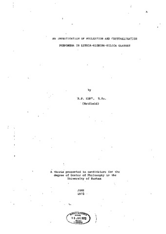 An investigation of nucleation and crystallisation phenomena in lithia-alumina-silica glasses
