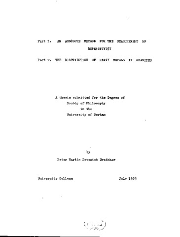 Part 1. An absolute method tor the measurement of reflectivity. Part 2. The distribution of heavy metals in granites
