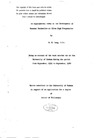 An experimental study of the development of gaseous ionization at ultra high frequencies