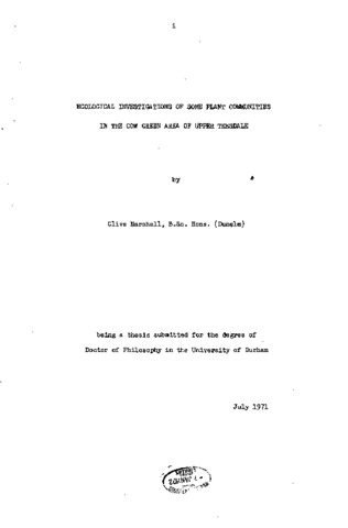 Ecological investigations of some plant communities in the cow green area of upper Teesdale