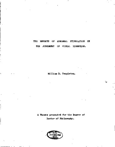 Spatially oriented behaviour is to a considerable extent calibrated by reference to stimulus norms and invariant relationships between inputs from different stimulus channels. Three sorts of experimental disruption of these normal relationships in the field of direction perception are examined and experiments are reported which attempt to elucidate the mechanisms underlying the behavioural reaction to them in humans. The first two examples concern the visual perception of verticality and frontal plane tilt. The first is an examination of Gibson's concept of normalization and negative after-effect in spatial dimensions. A review is made of several attempts to subsume the behaviour which this theory was designed to explain under more elementary principles. The most serious of these attempts - that of Kȍhler and Wallach - is the subject of a series of experiments which are reported and from which it is concluded that the attempt must be considered a failure and that the postulation of some mechanism genuinely characteristic of the spatial dimension is required to explain the behaviour. The second issue is the role of non-visual gravitational cues in the visual judgment of the direction of gravity. The historical dispute about the relative importance of visual and postural cues is outlined. Then attention is focussed on the contribution of the various types of postural cue and it is concluded that some investigation have seriously misinterpreted the role of vestibular information. An experiment is reported in which the two main factors known to have disruptive effects on spatial behaviour - tilt of the visual field and tilt of the subject - are shown to have their effects considerably attenuated by the presence of vestibular cues. The third example concerns the disruption of azimuth-oriented behaviour by modification of the normal correlation between spatial inputs in two modalities. A critical scrutiny is made of theories concerning the location of the adaptive change in response to such disruption. A corollary of one of the theories - that active movement is necessary for adaptation - is tested and rejected in a series of experiments, and these in addition provide some evidence for an alternative theory.