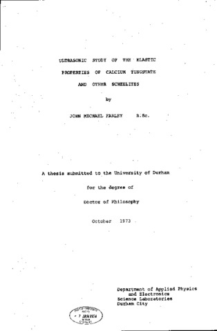 A study of the elastic properties of the scheelite structure crystals CaW0(_4), CaMo0(_4), ArMo0(_4) and PbMo0(_4) is presented. The seven independent components of the elastic stiffness constant tensor of CaW0(_4) have been determined between 1.5 K and 300 K by pulse superposition measurements of ultrasound velocities. A computer fitting procedure has been used to obtain the elastic constants from the velocity data; this has allowed the elastic constants to be determined even though large energy flux deviations prevented the measurements of the velocities of the quasi-shear modes propagated in the [100] and [110] directions. Experiments on SrMo0(_4) single crystals have shown that similar difficulties were the cause of inconsistencies in recently published velocity data; a new, correct set of elastic constants for SrMo0(_4) has been determined. Scheelites belong to the TII Laue group. The signs of C(_16) and S(_16) depend on the definition of the sense of the +z axis with recpect to the atomic arrangement. A convention previously used for CaMo0(_4) has bee adopted, the Z axis sensehas been found in SrMo0(+4) by an x-ray method: in each material C(_16) has been shown to be negative. Elastic behaviour and wave propagation characteristic, and their orientation dependence in the four materials, have been compared and contrasted. The work has provided a new in-sight into the acoustic properties of TI and TII Laue group materials; in the latter the “axes of acoustic symmetry” in the (001) plane do not coincide with the <100> and <110> crystallographic directions (as in TI's) but deviate from them by angles which are between 15 and 23 in the scheelites studied. Knowledge of the positions of these axes should facilitate further ultrasonic studies.