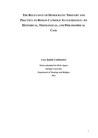 The Relevance of Democratic Thought and Practice to Roman Catholic Ecclesiology: An Historical, Theological, and Philosophical Case
