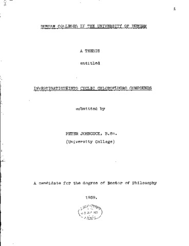 Investigations into cyclic chlorofluoro compounds.
