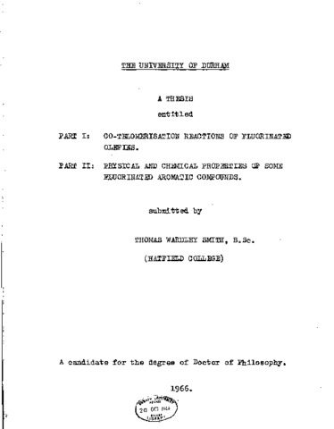 Part I: Co-telomerisation reactions of fluorinated olefins Part II: Physical and chemical properties of some fluorinated aromatic compounds.