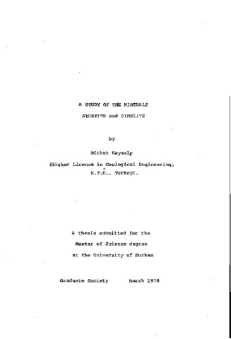 This thesis comprises a miner a logical study of two minerals:(a) Sturtite (b) Pimelite Both minerals were supplied from the collections of the Department of Geological Sciences of Durham University. Although they have already been described by several authors there are still some doubts and major contradictions between them. The present study is an attempt to clarify those problems. These two minerals were also in the Joint Committee on Powder Diffraction Standards (JCPDS) 1977 list of minerals for which powder diffraction data was required. The present study consists of mainly X-ray Diffraction Techniques and Thermal Techniques (Differential Thermal Analysis and Thermogravimetric Analysis). Also during the study Electron Microscope Techniques were used and Electron Microprobe Analysis obtained for both minerals.