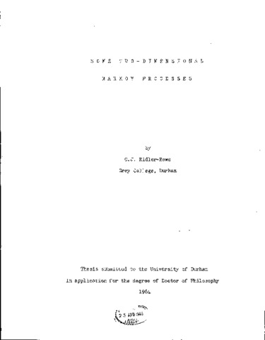 This thesis is primarily concerned with the mathematical analysis of some Markov processes which take place on a two-dimensional lattice of points in the first two chapters, mathematical models of two biological phenomena are considered, namely the competition for survival between two species, and the effect of an epidemic on a population. These models are obtained by a known method which permits certain random variations in the population sizes. For the model of the competition process, it is found that one of the species almost certainly becomes extinct, and the likelihood of the extinction of a given species is investigated. Also, the expectation of the the time-at which extinction occurs is bounded, irrespective of the initial state, and an estimate is made of the total number of births and deaths that occur before this time. For the epidemic model, it is found that the epidemic almost certainly dies out, and the expectation of the time at which this event first occurs is estimated when the initial population is large. Various questions on the eventual state of the population are also considered. In the third chapter, a class of recurrent two-dimensional random walks in discrete time is considered. A limiting law is found for the probability distribution of first passage times which is identical to the limiting law in the analogous situation for Brownien motion. The method is also applied to certain continuous time random walks and to certain random walks in three dimensions. The last problem considered is the distribution of points at which e simple unsymmetric discrete time random walk makes its first passage through the boundaries of the half and quarter planes. The limiting distribution is found to be a form of either normal distribution or stable distribution of order half.