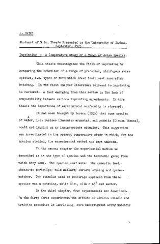 Imprinting: a comparative study of a range of avian species.