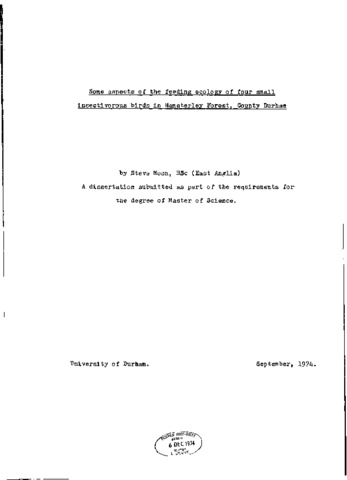 Some aspects of the feeding ecology of four small insectivorous birds in Hamsterlev Forest, County Durham