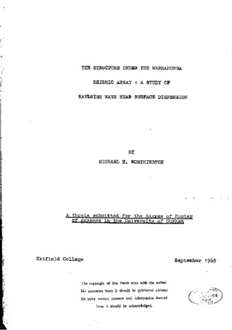 The structure under the Warramunga seismic array: a study of Rayleigh wave near surface dispersion.
