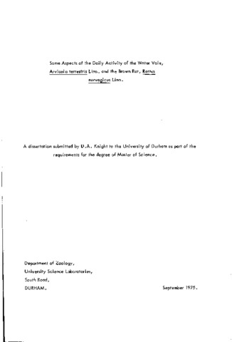 Some aspects of the daily activity of the water vole, arvicola terrestris linn, and the brown rot, rattus norvegicus linn.