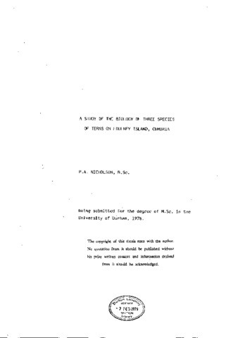 A study of the biology of three species of terns on Foulney Island, Cumbria