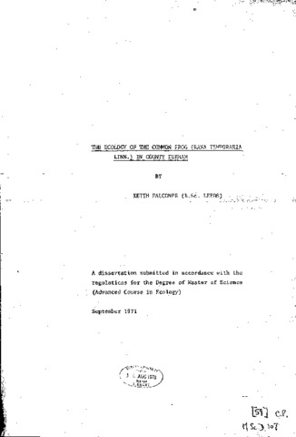 The ecology of the common frog (Rana Temporaria Linn) in County Durham.