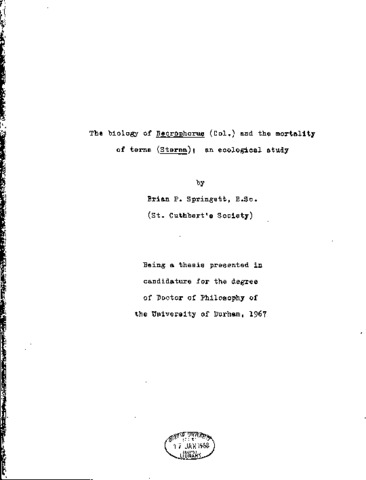 The biology of necrophorus (col) and the mortality of terns (sterna); an ecological study