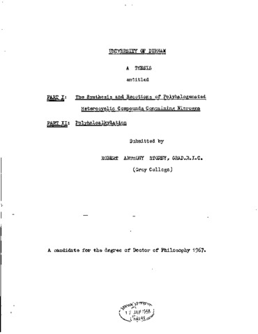 Part I; the synthesis and reactions of polyhalogenated heterocyclic compounds containing nitrogen part II: polyhaloalkylation.