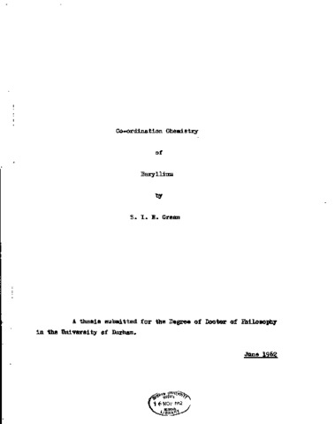 Co-ordination chemiatiy of beryllium