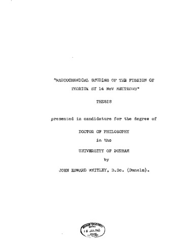 "Radiochemical studies of the fission of thorium by 14 mev neutrons"