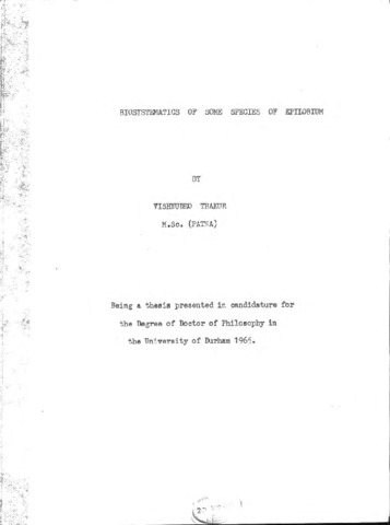 Biosystematics of some species of epilobium