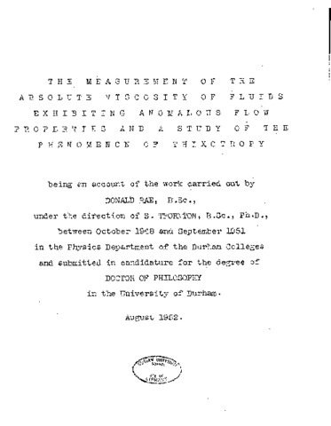The measurement of the absolute viscosity of fluids exhibiting anomalous flow properties and a study of the phenomenon of thixotropy