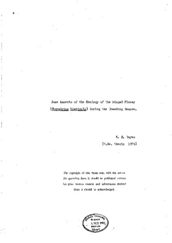 Some aspects of the ecology of the ringed plover(charadrius hlaticula) during the breeding season.