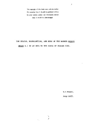 The status, distribution, and diet of the badger (meles meles L) in an area to the south of Durham city.