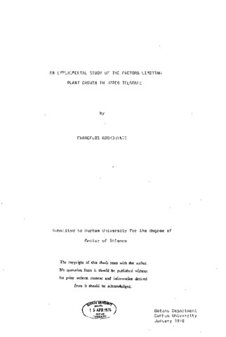 An experimental study of the factors limiting plant growth in upper Teesdale.