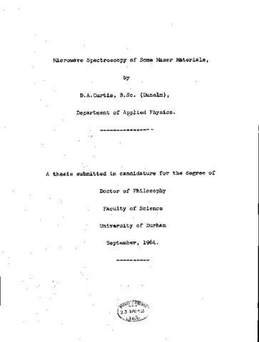 Vapour phase rubies were examined by several techniques. X-rays showed that the c-axis varied from place to place in each boule by up to 3º. Superimposed on this was a distribution of mosaic structure with the c-axis varying from grain to grain by up to 3º. Annealing did not improve these imperfections. Boules grown in the 90º orientation showed less mosaic than those grown in other orientations. Polygonisation, observed by Scheuplein and Gibbs (1960), provided an explanation. X-ray examination of corundum gave similar results. The random dislocation density revealed by etching was about l0(^5) dislocations/cm(^2) in corundum and ruby, therefore, adding chromium did not produce dislocations. The imperfections did not correlate with the boules, crystallography. The paramagnetic resonance linewidth increases with the imperfection in the sample and this increase is angular dependent. The basic linewidth depends on the chromium concentration. Sample 337c showed little angular broadening in the + (^1)(-2) to + (^3_)(_2) and the – (^3)(_2) to – (^1)(^2) transitions. In G2a the latter transition showed a maximum broadening of about 2(^1)(_2) times near the polar angle 45º. X-rays showed that each sample had similar c-axis misorientations but G2a contained much more mosaic than 337c. The misorientation predicted by the broadening G2a is 0º 25. The – (^1)(_2) to + (^3)(_2) transition in 337c was about 22 oersteds wide and did not vary much with angle. In G2a this transition broadened to 33 oersteds at polar angles 45º and 30º. The chromium concentration predicted from the basic linewidth at 55º in both sample is 0.43 weight % of chromium. The concentrations given by chemical analysis are 0.052 weight % for 337c and between 0.02 and 0.032 weight % for G2a.