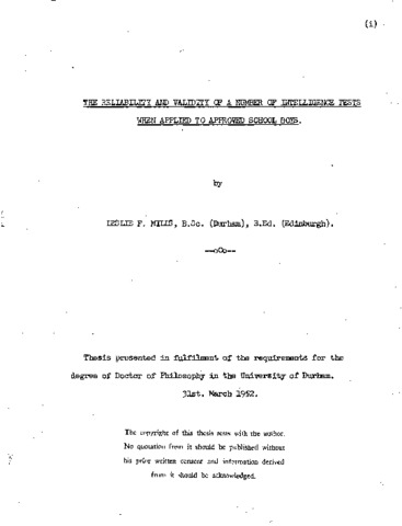 The reliability and validity of a number of intelligence tests when applied to approved school boys.