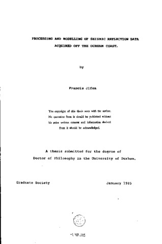Processing and modelling of seismic reflection data acquired off the Durham coast