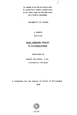 The aims of the research described in this thesis were to explore the chemistry of some model compounds related to fluorohydrocarbon polymers, in particular the copolymer of (I), especially to obtain definitive information about mechanisms of cross-linking and polymer degradation and to explore new approaches to cross-linking. <DIAGRAM CHgCFg-CFgCF-CHgCFg- -CH2CF2-C=CHRCP, 0(I) Ar (II)> A range of model compounds of the form (III) and (IV) were synthesized and the results obtained demonstrate that aryl-ether cross-links of the form (II) are stable in the presence of various bases at elevated temperatures. This indicates that these links are not responsible for the instability of copolymers cured in this way. <DIAGRAM> Models of the form (III) and (IV) show surprisingly low reactivity under typical curing conditions, indicating that either the polymers themselves are more reactive or reaction occurs by an unexpected mechanism. In pursuit of the likely cross-linking mechanism it was shown that polymers of the forms (I) and (CF(_2CH(_x)F(_2-X))(_n), x=1,2,are highly susceptible to elimination of HF in the presence of Lewis acids, e.g. SbF(_5) to yield highly unsaturated materials. Model chemistry involving SbF(_5) resulted in novel eliminations of HF, e.g. <DIAGRAM> (quant.) (V) (VI) the formation of some stable long-lived carbocations, e.g. <DIAGRAM> and other novel chemistry, e.g. a 1,5 elimination of HF <DIAGRAM> new approach to cross-linking was also developed involving the incorporation into the copolymer (I) of crowded comonomer units, e.g. when copolymers containing the structures (XI) where heated radicals were found via hemolytic cleavage to promote cross-linking:<DIAGRAM> examination of the model compounds yielded new re-actions including a route to seven-membered cyclic ethers, <DIAGRAM> and an unexpected ring closure reaction catalysted by NBU(_3),(HF)(_X), <DIAGRAM>The reactivity of the models was also examined in the areas of nucleophilic attack, base-catalysed elimination of HF, addition of 1,3-dipoles, the formation of long-lived carbanions and one-electron transfer chemistry. The results obtained considerably broaden the chemistry of this class of compound.