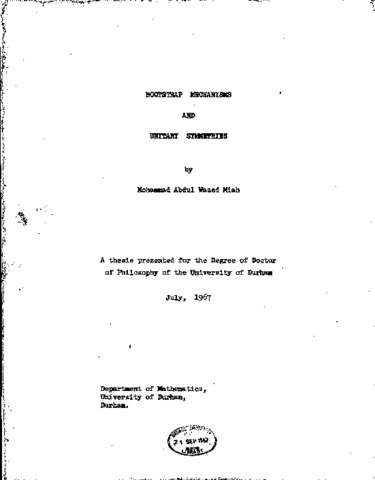 We study the consequences of the applications of the 'Bootstrap’ hypothesis to the Unitary Symmetries. The groups SU(3), SU (6), U(6,6) and their applications to the strong Interactions of the Hadrons are discussed in the first Chapter. In the second Chapter, we discuss some of the methods that have been used in the past in dynamical (bootstrap) calculations. In the third Chapter, we consider the P-wave quark-pseudoscalar meson Octet scattering and investigate whether the existence of the three quarks, Q, which belong to the spinor representation of SU(3) and are supposed to have fractional charges, can be explained in a self-consistent scheme. The calculation shows that there exists a reciprocal bootstrap relationship between quarks, Q and some other particles, which have the baxyon number 1/3, spin 3/2 and belong to the 15-dimensional representation of SU(3), Using the determinantal method the self-consistent values we have obtained are: NA 2429Mev.,5251 Mev., 22 and 32, where MQ, MQ and g22 are respectively the masses and couplings of Q and Q*. In the fourth Chapter, we consider the meson-baryon scattering in the context of U(6,6) symmetry and study the mass-splittings of the , baryon Octet and Decouplet by N/D method. It is assumed that the SU(3) symmetry is approximately exact so that the masses of the baxyon Octet and Decouplet obtained by using the U(6,6) vertices in the calculation should correspond roughly to their respective 80(3) degenerate masses. Although the results are very much cut off-dependent, the calculations shows that by varying the cut off, S and U(6,6) coupling, g parameters It is possible to obtain the mass-spilttings in the right direction. Considering the very much involved nature of the calculations, one may conclude that the results agree reasonably well with the known experimental facts.